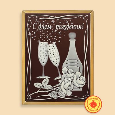 Пряник в шоколаде "С днем рождения - Бокалы, шампанское, цветы", 600 г.
