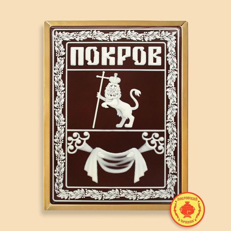 Пряник в шоколаде "Герб Покров в рамке", 600 г.