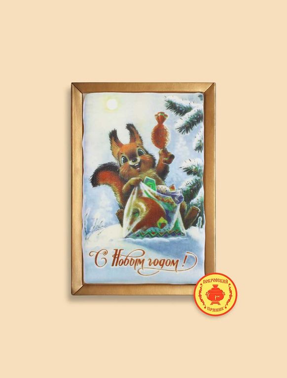Пряник в шоколаде "С Новым годом "Белочка с подарками", 140 грамм