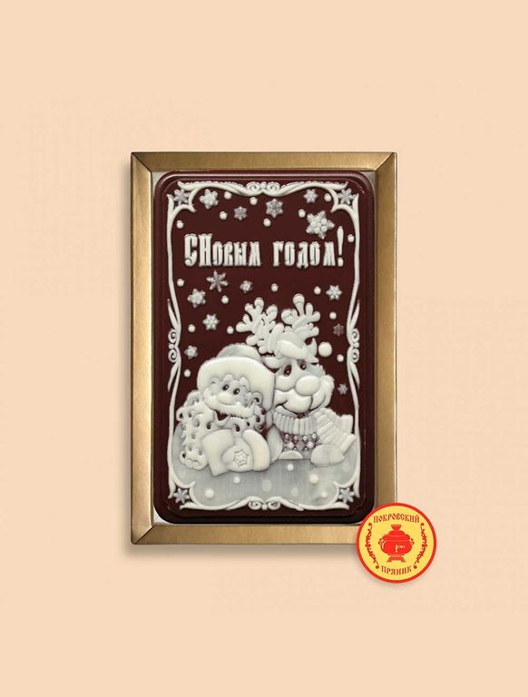 Пряник в шоколаде "С Новым годом, Дед мороз и олень", 140 грамм