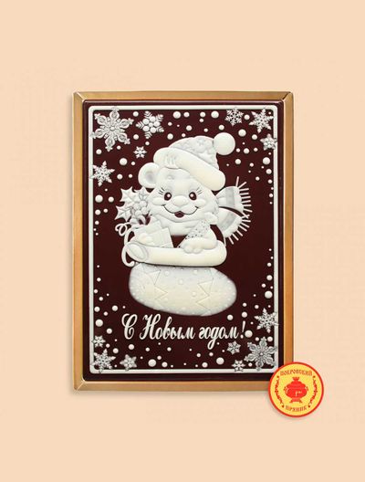 Пряник в шоколаде "С Новым годом "Мишутка в сапоге", 600 грамм