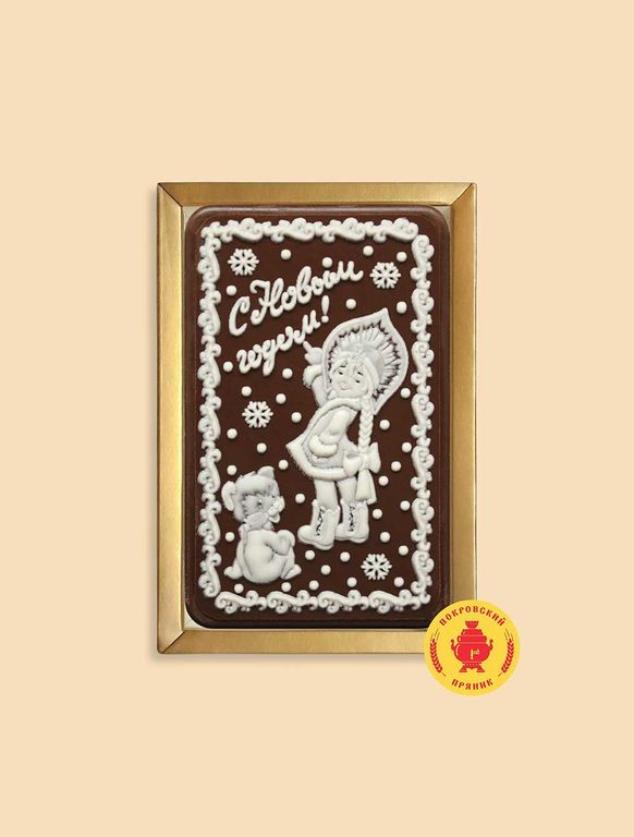 Пряник в шоколаде "С Новым годом, снегурочка с медведем", 140 грамм