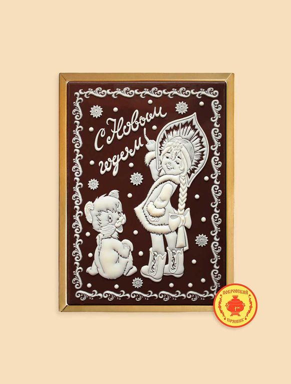 Пряник в шоколаде "С Новым годом "Снегурочка с медведем", 600 грамм