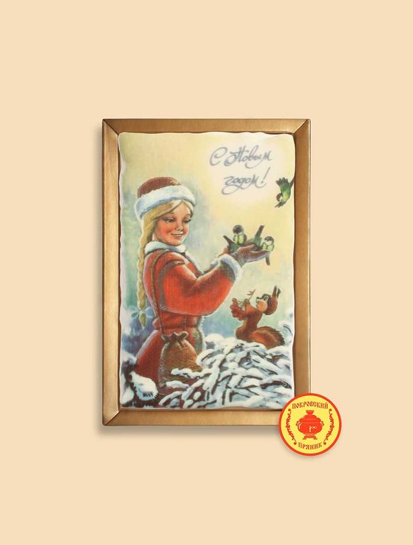 Пряник в шоколаде "С Новым годом "Снегурочка со снегирями", 140 грамм